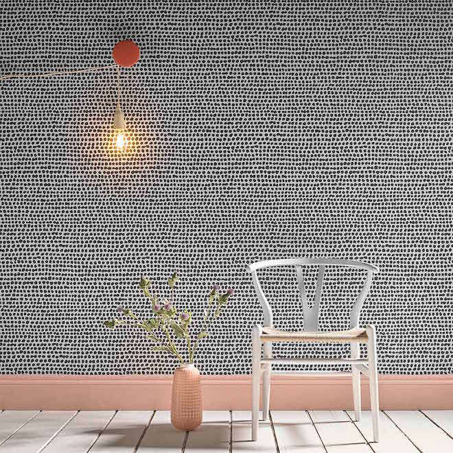 Het betreft hier een vliesbehang dat niet krimpt of uitzet en gemakkelijk met de paste the wall techniek te bevestigen is. De behangcollectie Dots en Terrazzo van Hemingway Design voor Graham & Brown zijn verkrijgbaar voor € 61,00 per rol op: www.grahambrown.com.